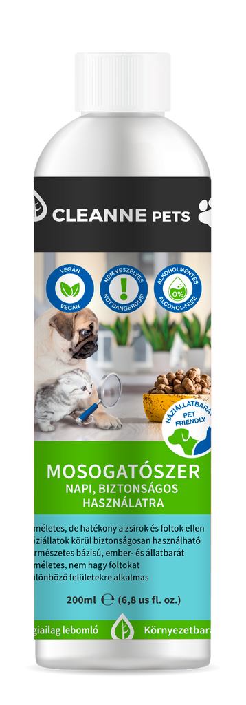 Felhasználás: Tegyél egy szivacsra 1-3 nyomásnyi CLEANNE PETS mososgatószert és a megszokott módon mosogass el.